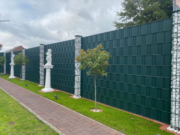 Mit Sichtschutzstreifen zum Einflechten lassen sich Stabgitterzäune aus Doppelstabmatten leicht zum blickdichten Sichtschutzzaun umrüsten. Man kann die Streifen sofort bei der Montage oder nachträglich in Ihren Doppelstabzaun einflechten.
